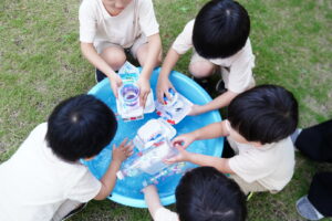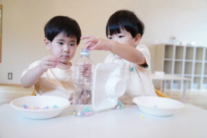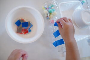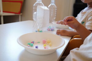 ビーズチームは、小さなビーズをペットボトルの中に入れて、キラキラ✨にしちゃおう!