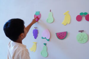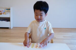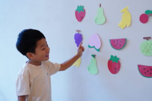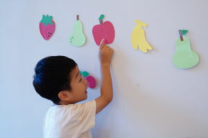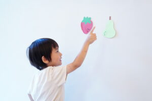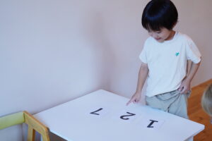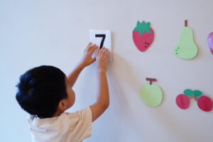 最後は、フルーツの数を数えたら、数字のカードも置いてみよう!