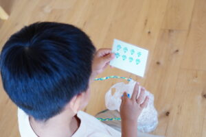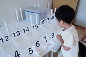 全部揃ったら、数字の書かれたかごの中に入れて先生に「できたよ✨」と教えてね◎