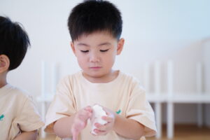 粘土で遊ぶ時のお約束をしっかりお話して、さっそく遊んでみました💯