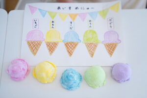 それぞれ遊んだ後は、その粘土を使ってアイスを作るよ🍦