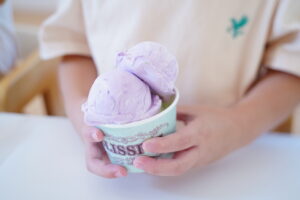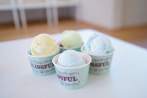 カップにアイスを入れてできあがり🍨💚