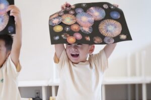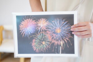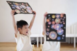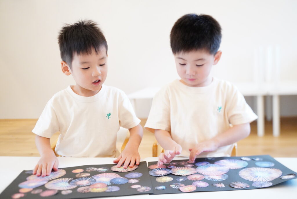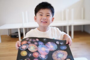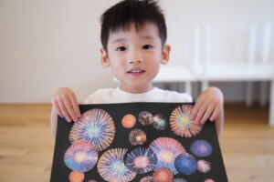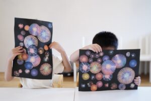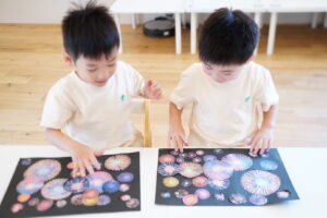 みんなには、花火をのりでペタペタしてもらおうと思います!