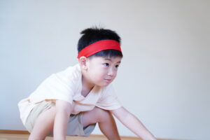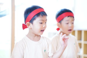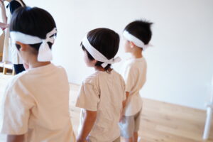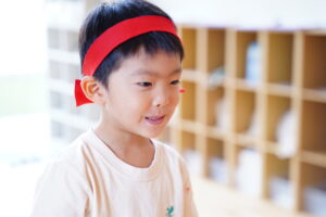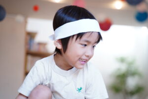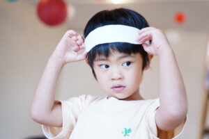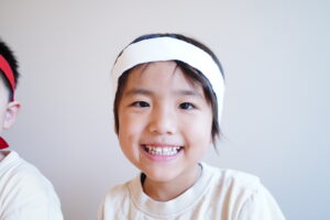 自分のチームの色のハチマキを付けるよ!!🔴⚪