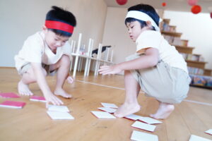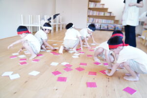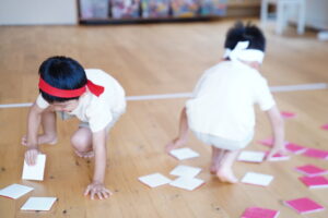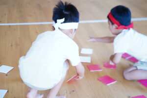 赤白チームに分かれて、自分のチームの色に