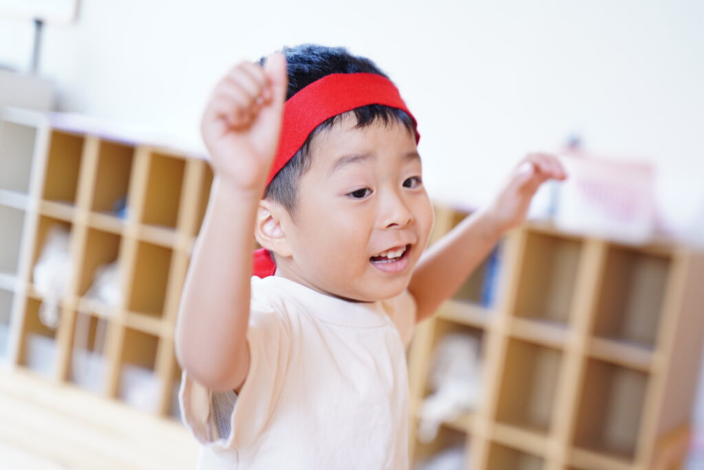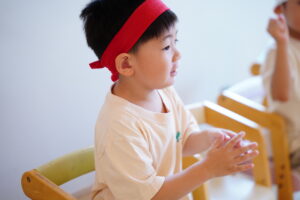 待っている間は大きい声でお友達を応援します🎌