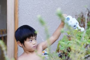 お気に入りのぞうさん🐘でお花に水をあげるよ!