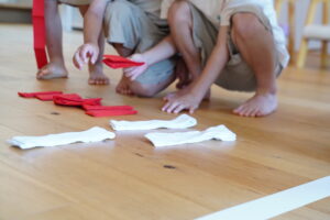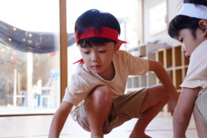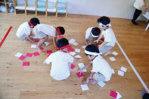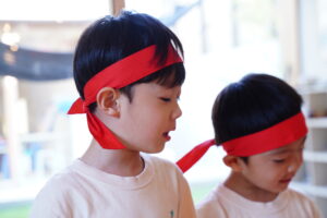 自分のチームの色のハチマキを取りに来てね🔴⚪