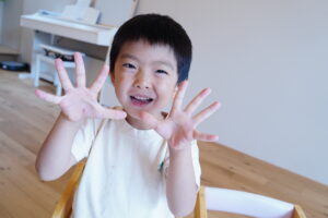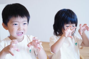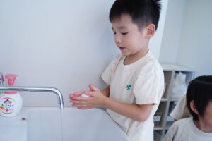 ご飯づくりをする前に石鹸で手を洗おう!