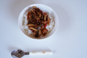 今日のメニューは・・・トマトとナスの中華丼です!!