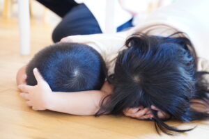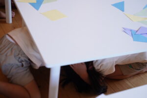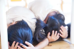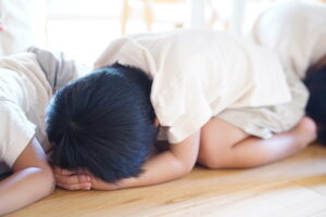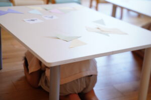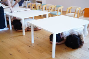 すぐに机の下でダンゴムシポーズをする練習をしよう!