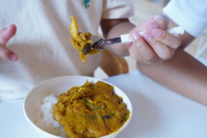 危ないから両手で持っていこうね🍛♡