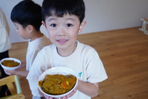 今からカレーを食べるので、カレーを持って行ってね!