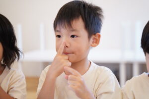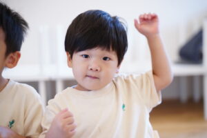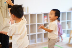 手遊びを覚えた後は、みんなの前で発表してもらいました◎見ているお友だちは、合いの手を入れて、楽しく手遊びに参加できました💜