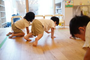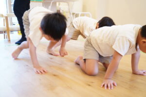 今日は、「こぶた・たぬき・きつね・ねこ」の歌で、色んな動物になってもらいたいと思います!
