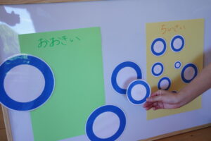 次のえほんの時間は、身の回りの大きいと小さいを見つけてみよう!