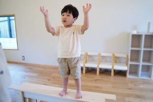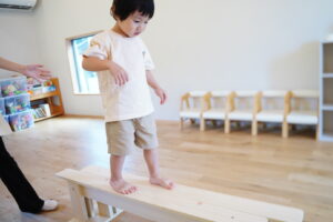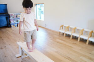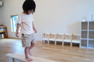 落ちないように平均台の上をよく見て歩いていくよ👀✨