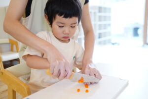 次は先生と一緒にニンジンを切ってみよう🥕✨