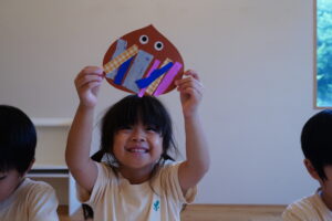 おともだちから折り紙をもらったらカラフルな栗になるね🌈
