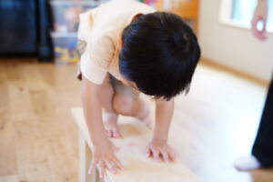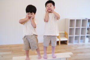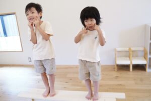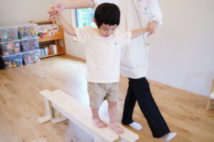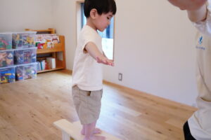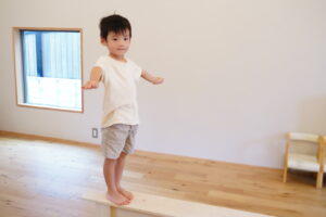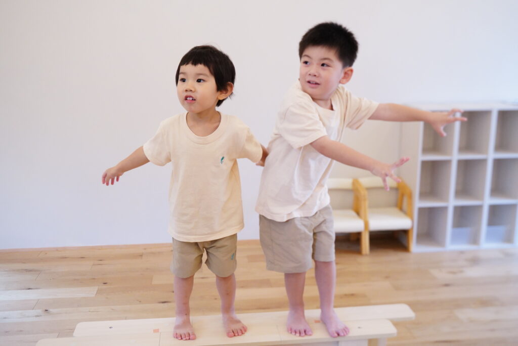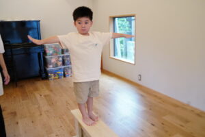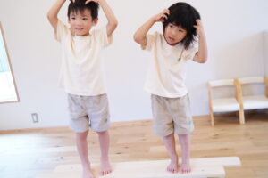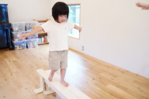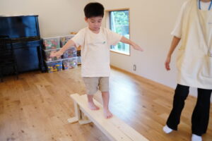 今月のたいいくは平均台を使ってバランスや体幹を身につけていくよ😆✨