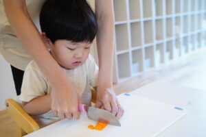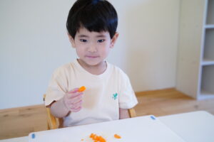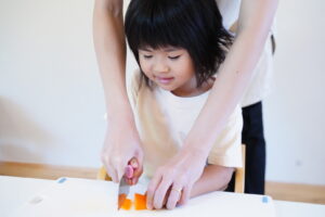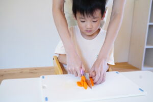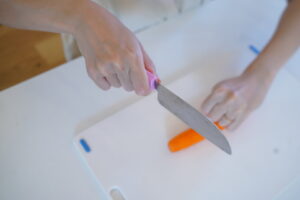 包丁を使ってニンジンを小さくしていくよ😉✨