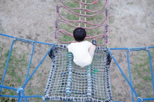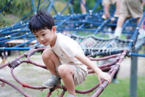 ぐらぐらして怖いけど、上の方までのぼるぞ~!