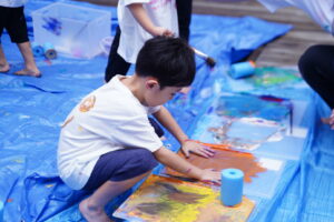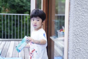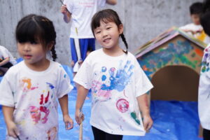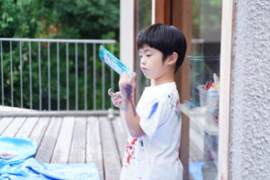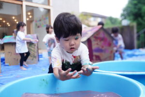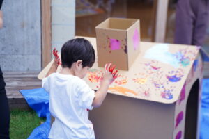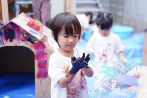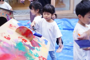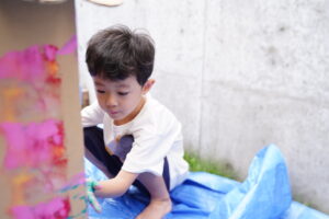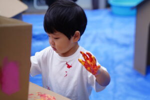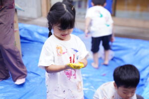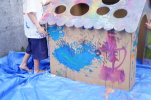 今日は、お洋服に絵の具を付けても大丈夫😆💖