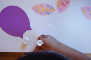 最後はのりを使ってふくろうときのこを画用紙に貼ろう😌