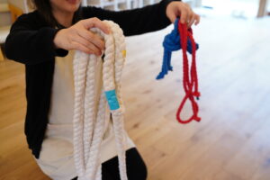 こうやって縄を上下や左右に動かしてへびを作ろう✊