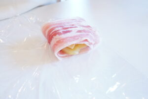 そのハンバーガーをお肉でクルクル巻きました🍗
