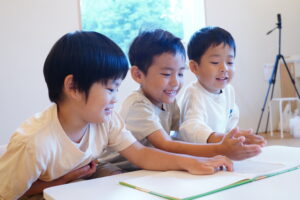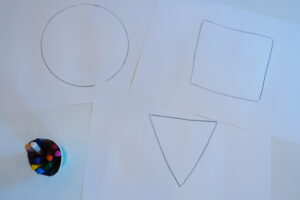 先生が言ったお題を聞いて、〇で描くの?△?▢?