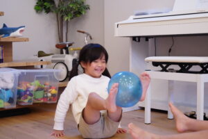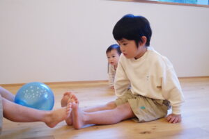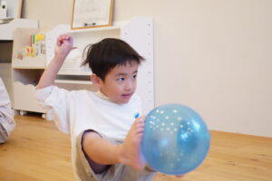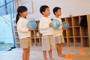 今回は先生のお話を聞いてボールを使って身体を動かす