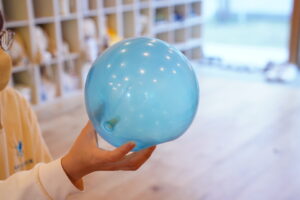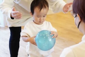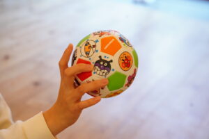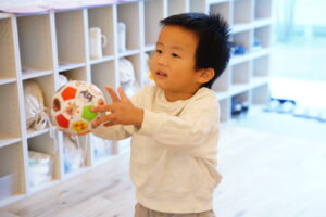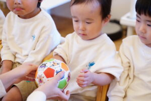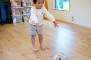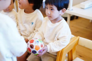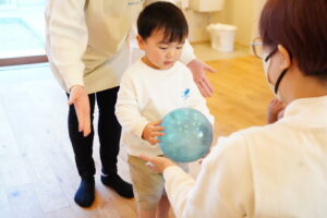 今日もボールを使って、「どうぞ」って渡す練習をしていくよ◎