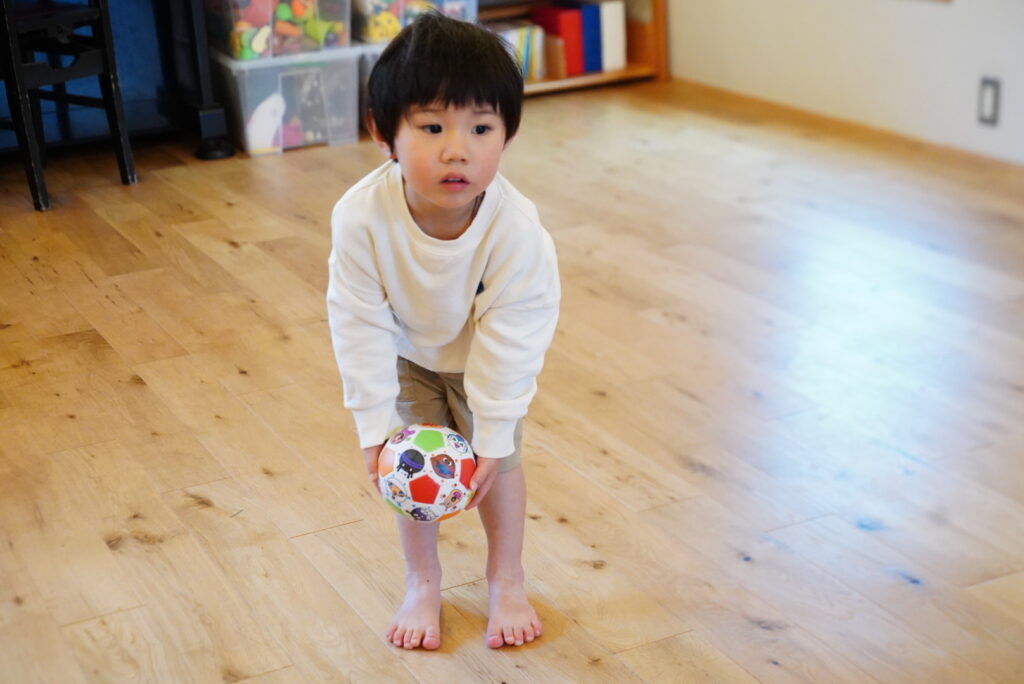 転がってきたボールをキャッチして、はい「どうぞ!」