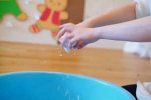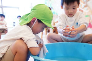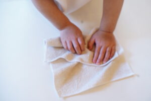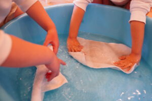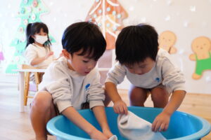 お水で濡らして、ぎゅーーーってしぼろうね!