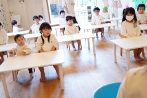 今日は、1人1つの机と椅子を用意!
