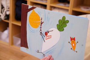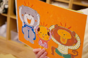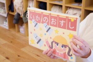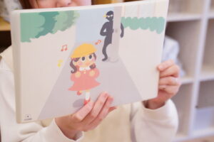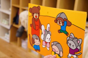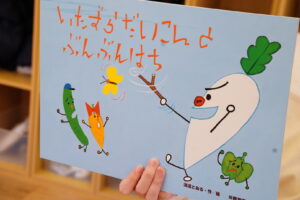 今日は紙芝居を使って、
