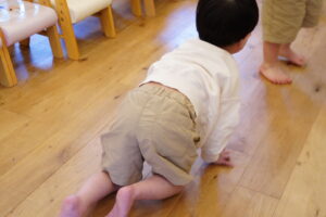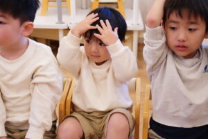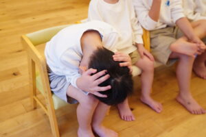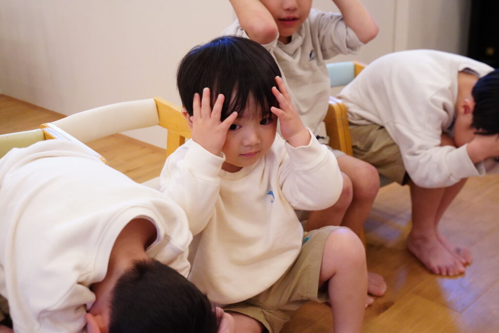 ダンゴムシポーズをしたときに、頭をしっかり守ってね!