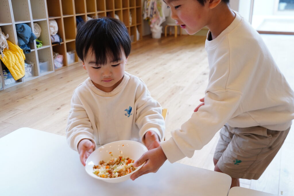 枝豆、にんじんをまぜまぜしようね~✨
