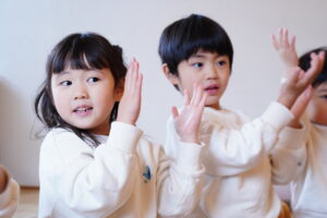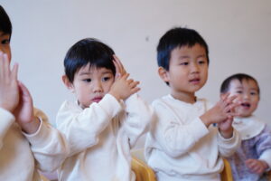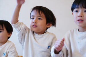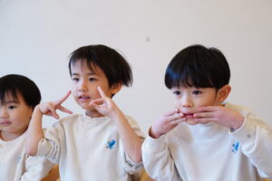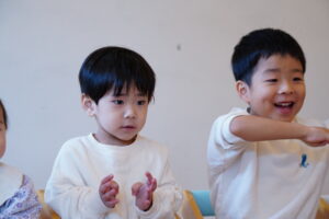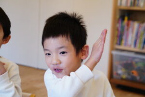 先週なんの手遊びをしたか覚えてる子!手上げて!