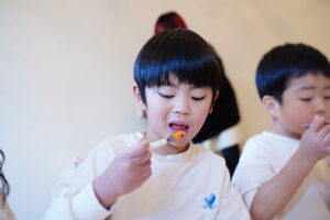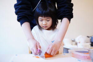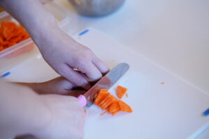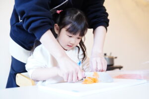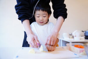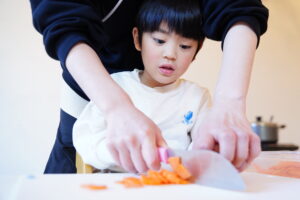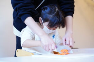 切るときにしっかり力を入れて野菜を切っていたね!