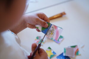 はさみを使って、ちょきちょきパズルをやってみよ~う!