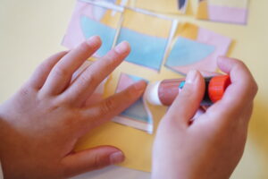 できたらパズルを画用紙に貼っていくよ~!