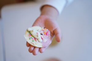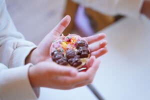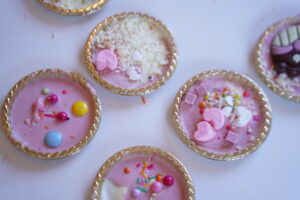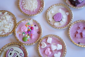 チョコレートの型の真ん中を後ろから押すと取れるよ~!