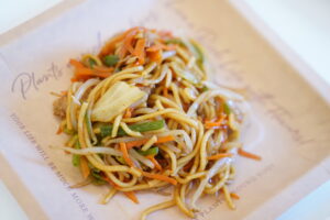 たっぷりの野菜と黄色の細い麵を焼いていくよ!