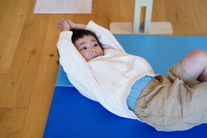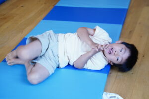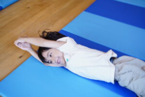 平均台降りたらマットの上をゴロゴロ~して