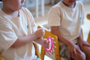 今月は、タンバリンと鈴でパートごとに分かれて