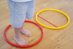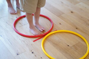 フラフープ渡りは、2つのフラフープを使って