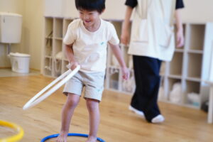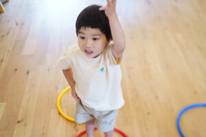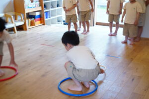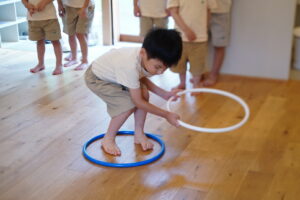 フラフープの中に入って、準備~