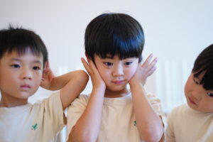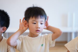 みんな手を耳にして音を集中して聞いていました😌